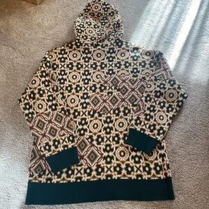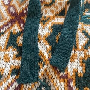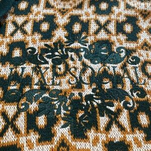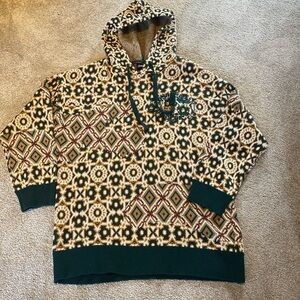 Smoke Rise Cotton Hoodie Tapestry Jacquard Knit Top Green Gold Fairisle Sz XL