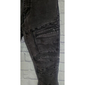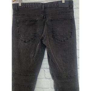 Smoke Rise Distressed Moto Denim Jeans Mens Size 36 x 34 Charcoal Zipper Pockets