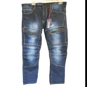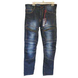 Smoke Rise Jeans Men 34x32 Blue Slim Fit Moto Biker Zipper Distressed Grunge NWT