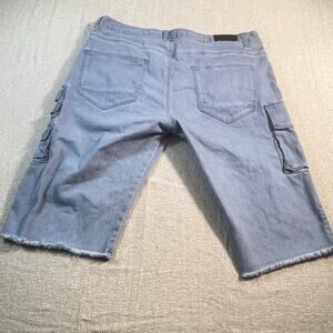 Smoke Rise Men’s 38 Blue Dusty Utility Cargo Denim Shorts Raw Hem Streetwear