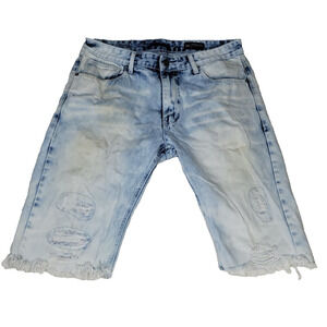 Smoke Rise Shorts Mens Sz 34 Blue Jean Distressed Y2k Fray Preppy Acid Wash