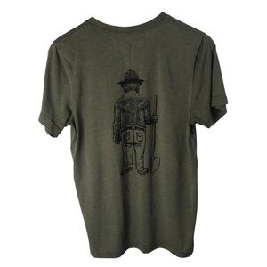 Smokey Bear Shovel Crewneck Tee (Unisex)Shirt Sz Medium Soft Spun Olive Green