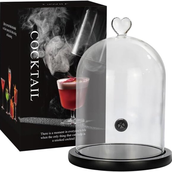 Smoking Cloche For Food Drinks With Wood Base, Cocktails Smoke Infuser Accessory