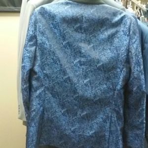 Royal Blue paisley black shawl collar double vented back