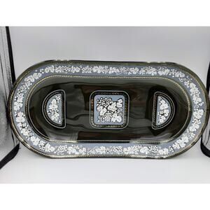 Smoky Glass Tray Plate With White & Gold Accent Console Dish Serving Platter