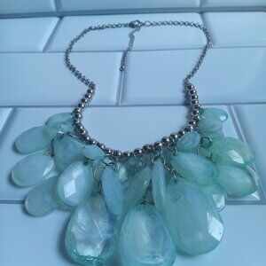 Silver bead and Smoky Light Blue Teardrop Statement Necklace