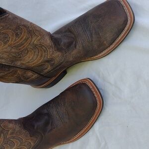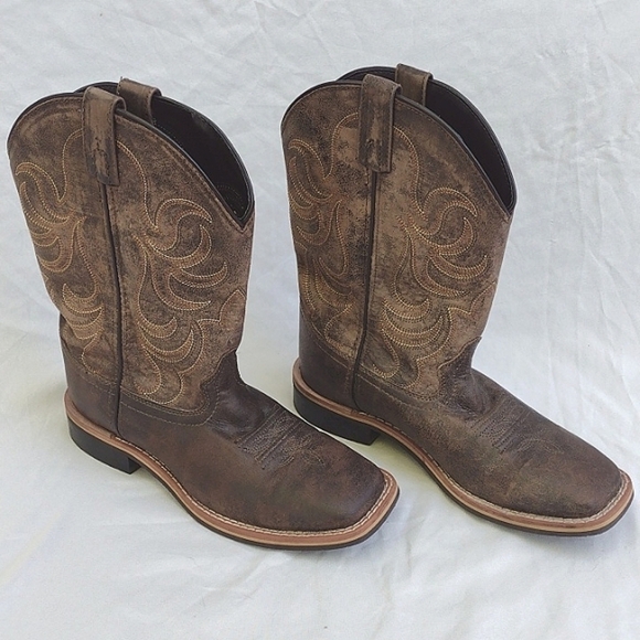 this is a pair of Smoky mountain boots that have barely been worn. They are size 5. The sides are nicely embroidered and these are square toe.