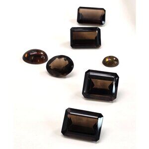 This set includes a variety of smoky quartz gemstones in both oval and rectangular cuts. Known for their earthy tones, these stones are ideal for jewelry making or as a unique addition to a gemstone collection. The clarity and cut make them a valuable selection.