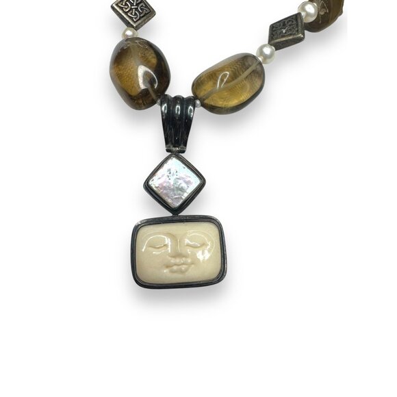 Smoky Quartz Pendant Necklace 17" Sterling Silver Toggle Clasp