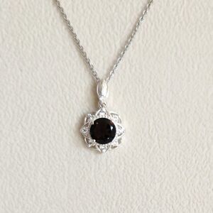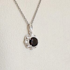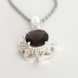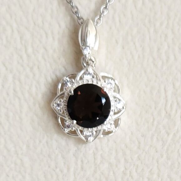 Smoky Quartz Pendant Necklace with Simulated Diamond