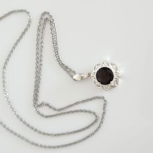 Smoky Quartz Pendant Necklace Stainless Steel Chain