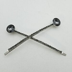 Smoky Stone & Rhinestone 4" Bobbin Pin Set of 2
