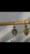 Smoky gray crystal in bright golden upside down teardrop earrings. 1” drop off Shepard hook ear wire.