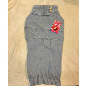 Smoochie Pooch Pet Blue Sweater With Pearl Details SZ Large