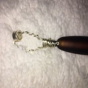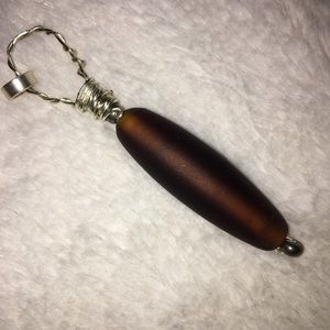 Silver coated copper wire wrap, dark brown long glass bead sanded smooth.