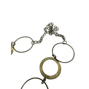 Smooth and Hammered Circle Chain Necklace Gold Tone 40 inch