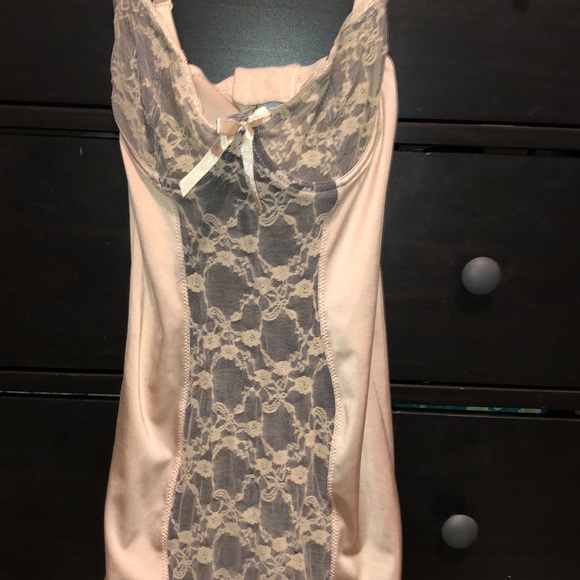 Smoothform • Medium Control slip shaper Lace and Microfiber Shaping Slip with built in Underwire • champagne color -