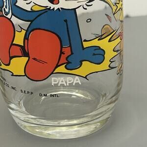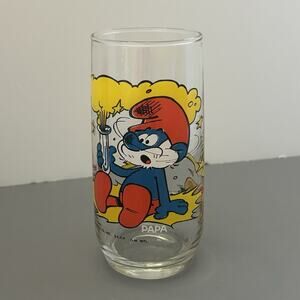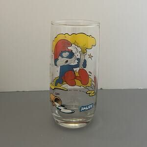 Smurf Papa and Jokey Collector Glass/Tumbler 1983 Peyo Wallace Berrie & Co Vintage 6 Inches