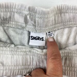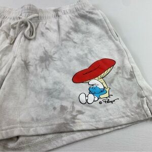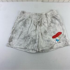 Smurf Women’s Marbled Gray Elastic Waistband Graphic Design Athletic Shorts Sz M