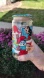 Colorful Smurfs glass tumbler featuring vibrant cartoon characters. Comes with a blue lid adorned with floral designs.
