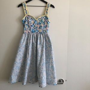 Smurfs X Unique Vintage Smurf Floral Print Pinafore Swing Dress, NWT