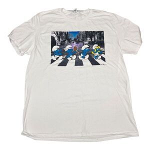 Smurfs Mens L Abbey Road T-Shirt Beetles Novelty Papa Smurfette Music Cartoon