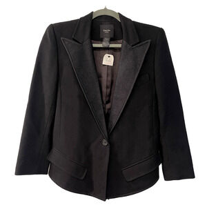Smythe 4 Classic Wool Wide Lapel Tuxedo Blazer $725 Textured Jacket Black