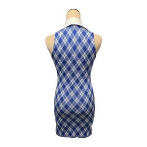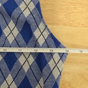 Smythe Argyle Polo Mini Dress Blue Knit Bodycon Preppy Plaid Size Small