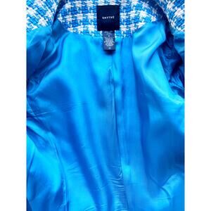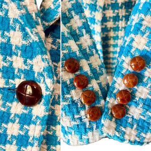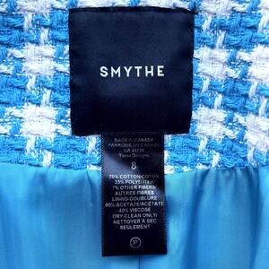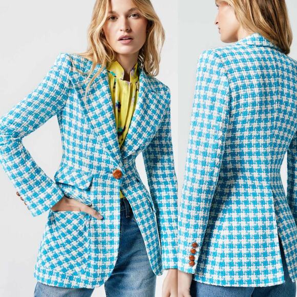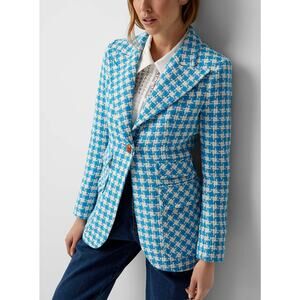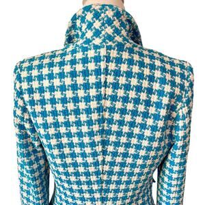 Smythe Birkin Blazer Topaz Blue Houndstooth Tweed Jacket Made in Canada Size 8