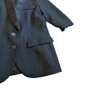 Smythe Black Wool Blend Silk Lapel Blazer Jacket 3/4 Sleeve Ruched Size 6 Womens