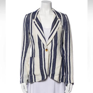 Smythe Blazer 100% Linen Lined Navy Stripe Nautical