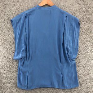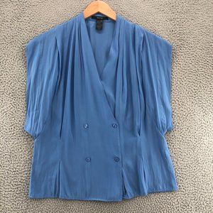 Smythe Blouse Womens Medium Blue Yoda Cap Sleeve Double Breasted Button Slouchy