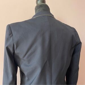 Smythe- Blue Navy White Collar Wool Blazer Jacket One Button Size 4 Work