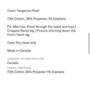 Smythe Cropped Pintuck Pant in Tangerine Plaid Size 6