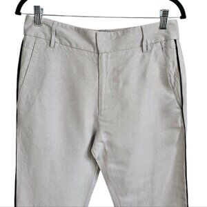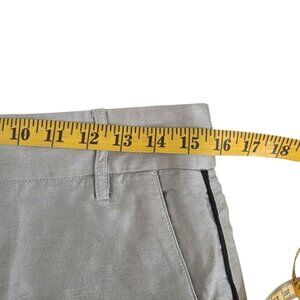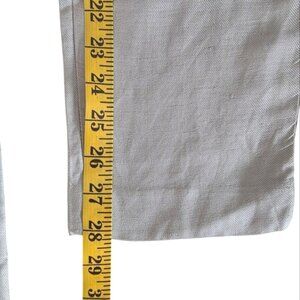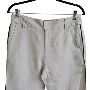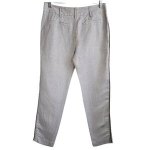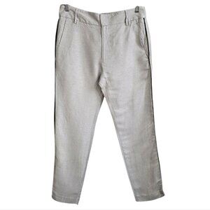Smythe gray chinos with a relaxed fit and tapered legs. Features a soft, textured rayon-linen blend and elastic waistband.
