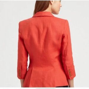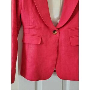 Smythe Linen Blazer Red Shawl Collar Flap Pockets One Button Lined 8 $695