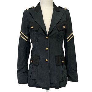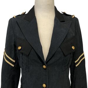 Smythe Military Style Jacket Black Fade Gold Embellished Button Up Blazer Size 2