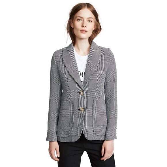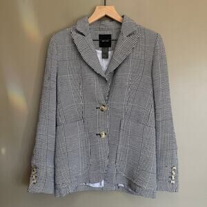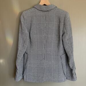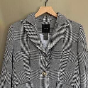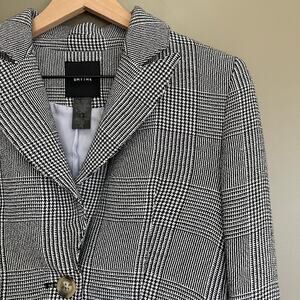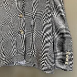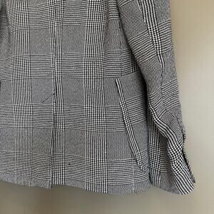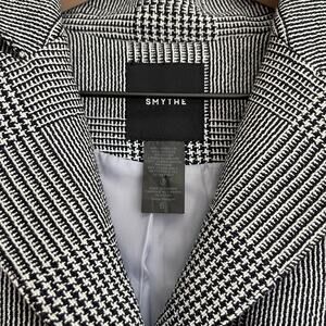 Smythe Portrait Neck Blazer in Prince of Wales Print, Black White Houndstooth Plaid Print, Size 6, Long Sleeves, Excellent Condition with No Flaws.