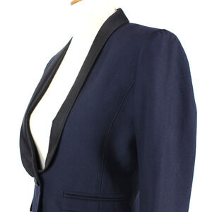 Smythe Satin Trim Duchess Blazer Navy Blue Wool Black Silk Blend Single Button 4