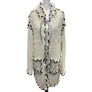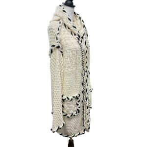 Smythe x Augden Long Oversized Open Knit Crochet Tie Front Cardigan Sweater in a Soft Alpaca Wool Blend.