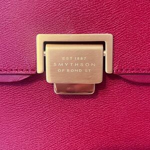 Smythson Grosvenor East West Zip Leather Tote Ruby Red Briefcase Vintage Luxury