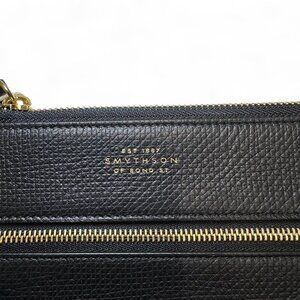 Smythson Men's Black Leather Panama Pochette Pouch, Wristlet - NWOT