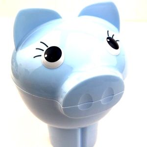 Preowned- Hutzler Piggy Snack holder fits in cup holders. Great for on the go. Blue in color. BPA free and dishwasher safe top rack.