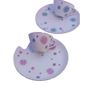Snack Plates Shafford Japan VTG MCM Atomic Starburst Cup Snowflake Set