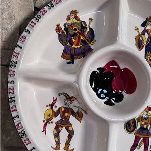 Snack Tray Divided Serving Platter Poker Roulette Wheel Motif Ceramic Vtg. 14"