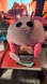Adorable pink plush toy with a colorful donut accessory. Perfect for cuddling and play.