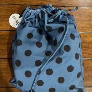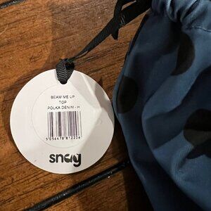 Never worn and still has tags on. Snag Tights Tankini Swim Top in size H (24-26). Style: Beam Me Up in blue with black polka dots. From the website- "Beam Me Up in this peplum Tankini Top in a blue polka pattern. With a cute frill detail, it's designed with adjustable straps for a customizable fit and includes a light padding with fully integrated cups for added comfort. Perfect for mix and match with other Snag swim, the internal bust shelf is crafted from power mesh for extra support, and it's made from at least 50% recycled materials. Each tankini top is finished with a small metal Snag decal and arrives in it's own drawstring bag made from leftover fabric and trims." More images of it being worn can be found on Snag's website here: https://snagtights.us/products/tankini-top-polka