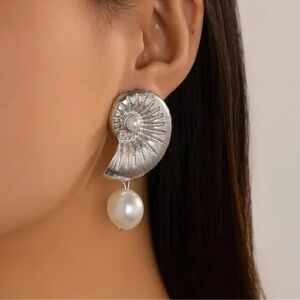 Snail Pearl Silver Earrings
