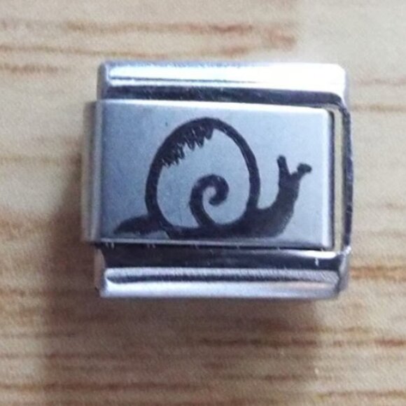New never used 9mm stainless steel Italian charm with a snail lasered on it. Fits all standard 9mm Italian charm bracelets,thanks for looking!