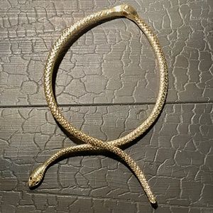 Make a bold fashion statement and let your inner goddess shine with this captivating Gold-Tone Snake Choker Necklace. Ideal for gifting or treating yourself, this piece is a must-have addition to any jewelry collection.
